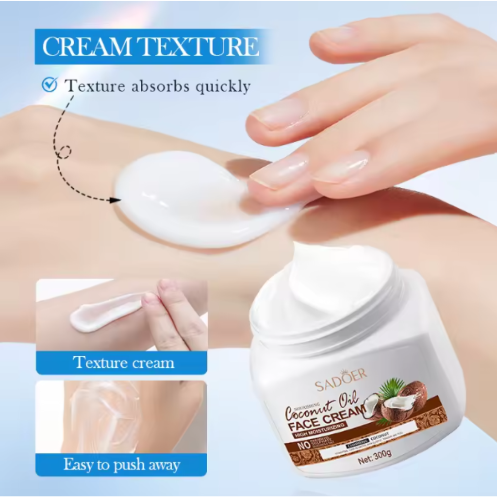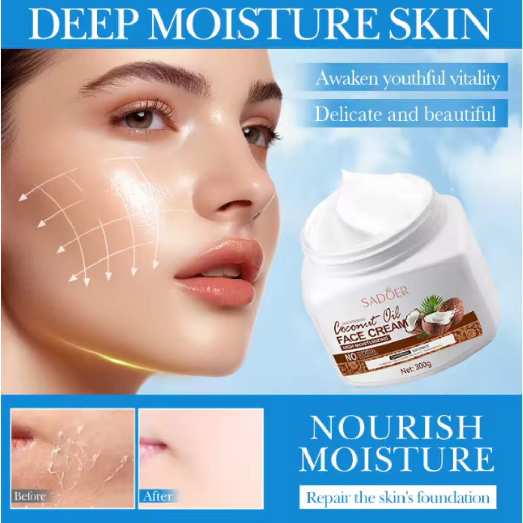 SADOER 椰子油滋潤面霜,深層保濕潤膚,輕盈不黏膩,無添加配方,令肌膚水潤透亮、健康亮澤。