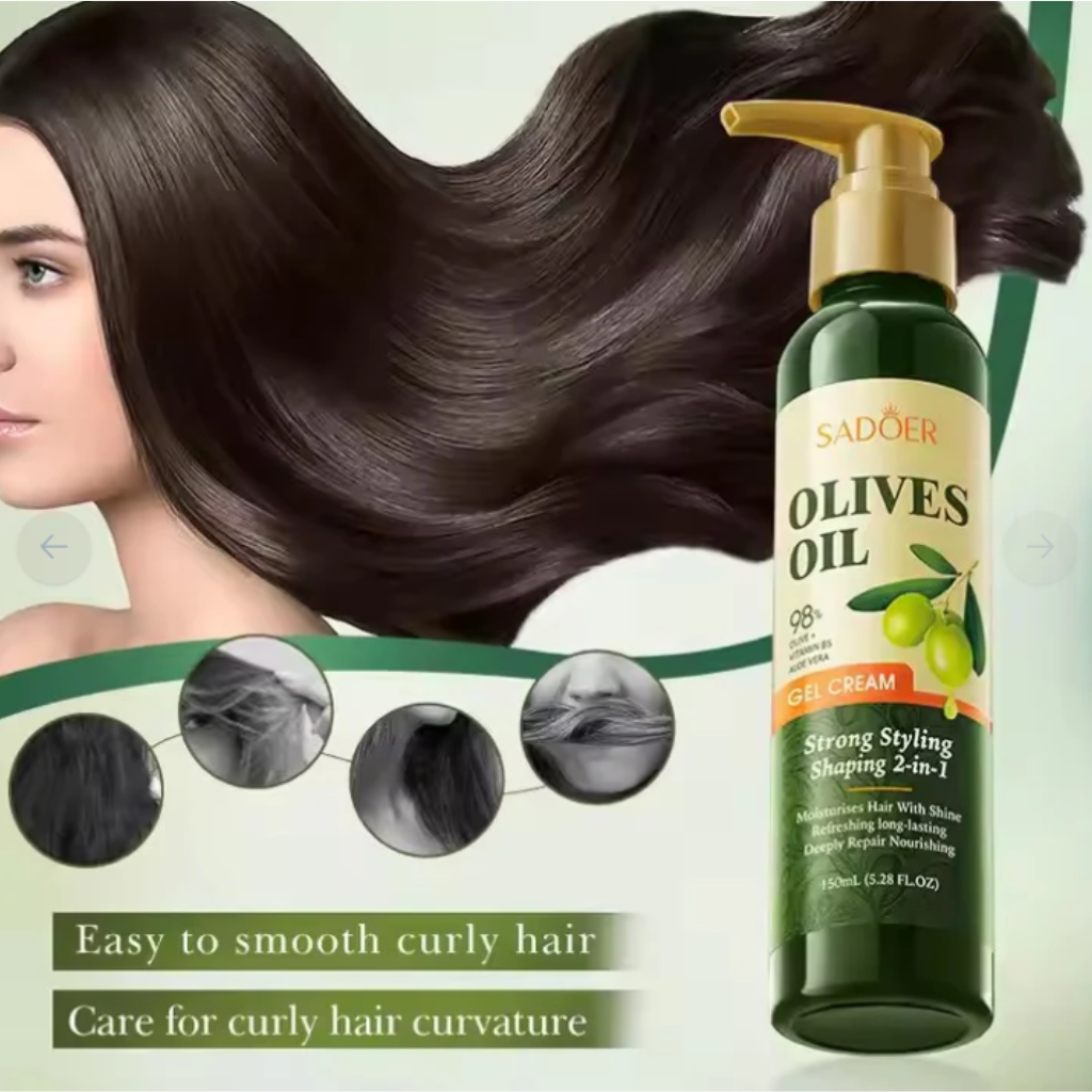 SADOER 橄欖油強效定型啫哩,長效定型撫平毛躁,維持彈性與捲度,輕鬆塑造時尚亮澤造型。